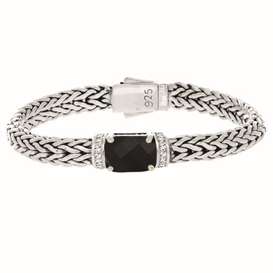 Sterling Silver Signature Woven Sapphire Rectangle Lock Bracelet