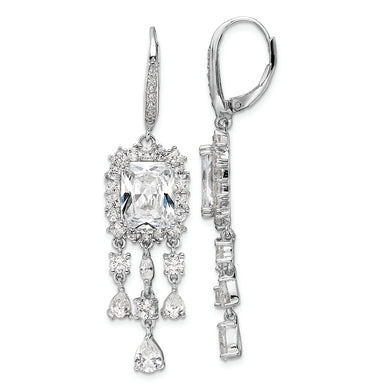 Sterling Silver Cheryl M Rhod-plated CZ Fancy Dangle Leverback Earrings