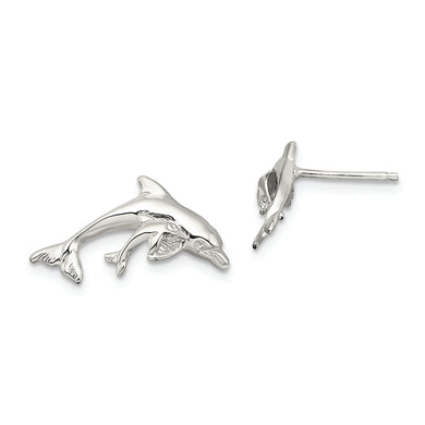Sterling Silver Polished Dolphin and Baby Post Earrings