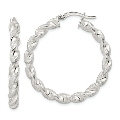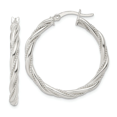 Sterling Silver Polished and Textured Twisted Circle Hoop Earrings