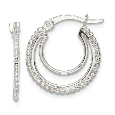 Sterling Silver Polished Double Circle Beaded Hoop Earrings