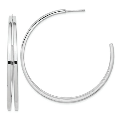 Sterling Silver Rhodium Plated Split Design Hoop Post Earrings