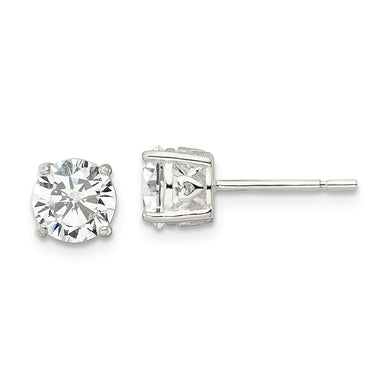 Sterling Silver Polished Rhodium-plated CZ 6mm Stud Earrings with Jackets