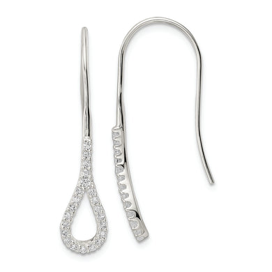 Sterling Silver Polished Teardrop CZ Dangle Earrings