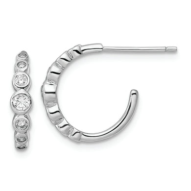 Sterling Silver Rhodium-plated CZ Post Hoop Earrings