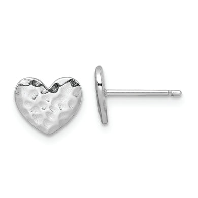 Sterling Silver Rhodium-plated Polished Hammered Heart Post Earrings