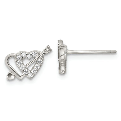 Sterling Silver Rhodium-plated CZ Double Heart and Arrow Post Earrings