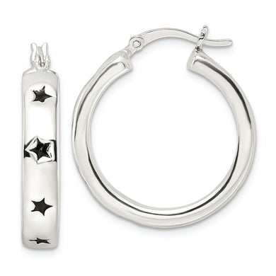 Sterling Silver Polished Black Enamel Star Circle Hoop Earrings