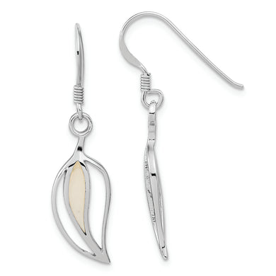 Sterling Silver Rhodium-plated Polished MOP Leaf Shepherds Hook Earrings
