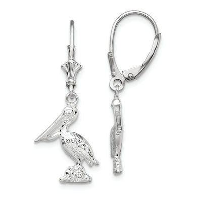 Sterling Silver Polished 3D Small Pelican Leverback Earrings