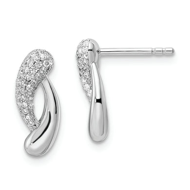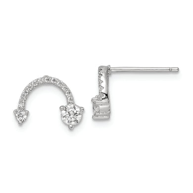Sterling Silver Polished Rhodium-plated CZ Half Circle Post Earrings