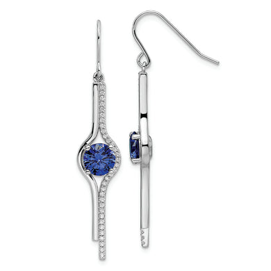 Sterling Silver Rhodium-plated Blue and Clear CZ Dangle Earrings
