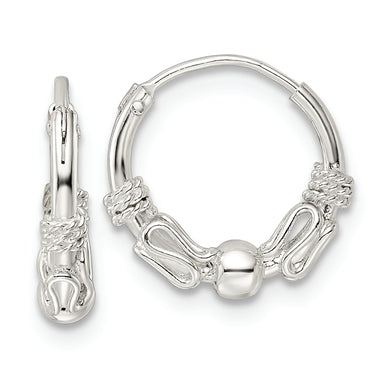 Sterling Silver Polished Beaded Circle Endless Hoop Earrings