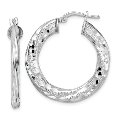 Sterling Silver Rhodium-plated 3x29mm D/C Twisted Tube Hoop Earrings