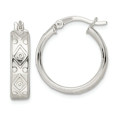 Sterling Silver Polished and Textured Square Hoop Earrings