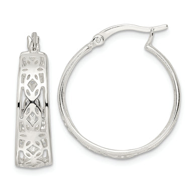 Sterling Silver Polished Floral Circle Hoop Earrings