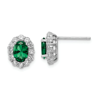 Sterling Silver Polished Rhodium-plated Green and Clear CZ Post Earrings