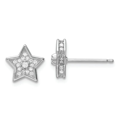 Sterling Silver Polished Rhodium-plated CZ Star Post Earrings