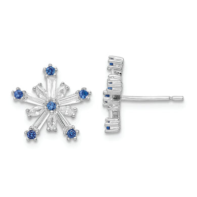 Sterling Silver Rhodium-plated Polished Blue & White CZ Snowflake Post Earr