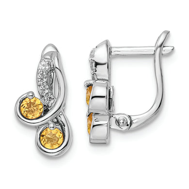 SS Rhod-plate .52t.w. Citrine/White Topaz Swirl Hinged Earring
