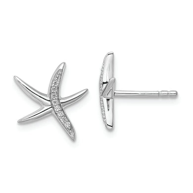 Sterling Silver Rhodium-plated CZ Starfish Post Earrings