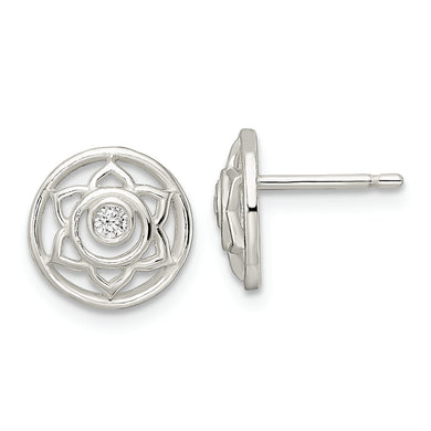 Sterling Silver CZ Lotus Chakra Filigree Post Earrings