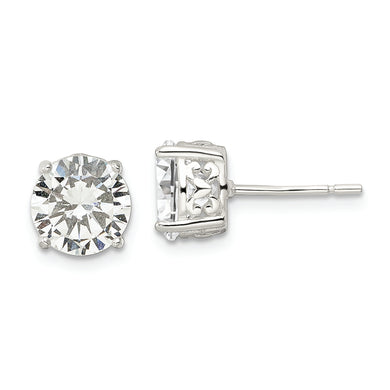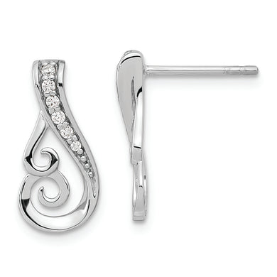 Sterling Silver Rh-plated Polished CZ Post Earrings