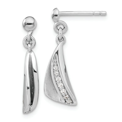 Sterling Silver RH-plated Brushed & Polished CZ Dangle Post Earrings