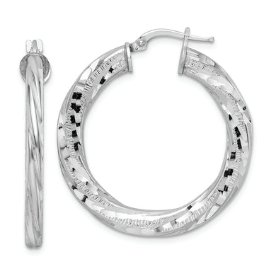 Sterling Silver Rhodium-plated 3x33mm D/C Twisted Tube Hoop Earrings