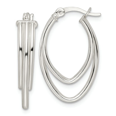 Sterling Silver Polished Triple Twisted Oval Hoop Earrings