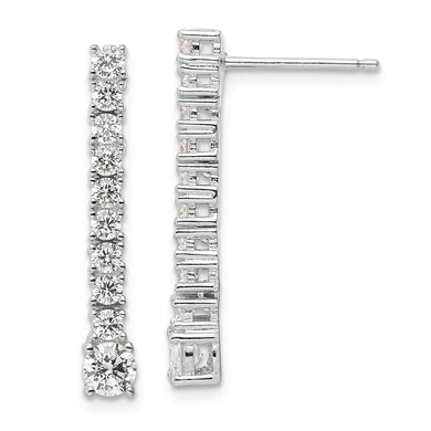 Sterling Silver Polished Rhodium-plated CZ Post Dangle Earrings