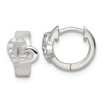 Sterling Silver Polished CZ Heart Hinged Hoop Earrings