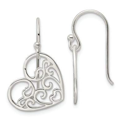 Sterling Silver Polished Heart Swirl Dangle Earrings