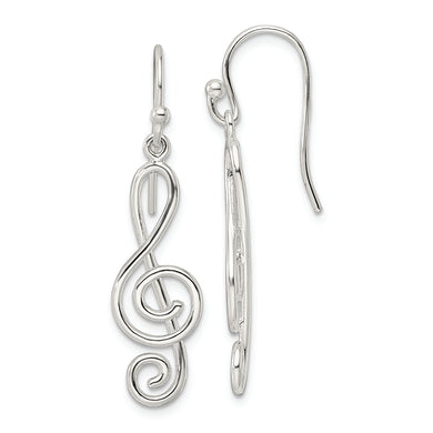 Sterling Silver Polished Treble Clef Dangle Shepherd Hook Earrings
