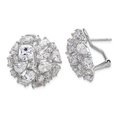 Sterling Silver Cheryl M Rhod-pl CZ Multi-stone Cluster Dome Earrings