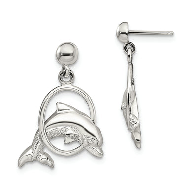 Sterling Silver Polished Dolphin in Hoop Dangle Post Earrings