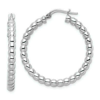 Sterling Silver Rhodium-plated Polished 3mm Beaded Hoop Earrings