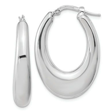 Sterling Silver Polished Rhodium-plated Oval Hollow Hoop Earrings