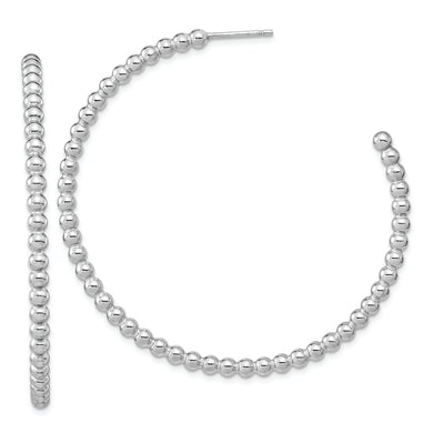 Sterling Silver Rhodium-plated Polished Beaded Hoop Post Earrings