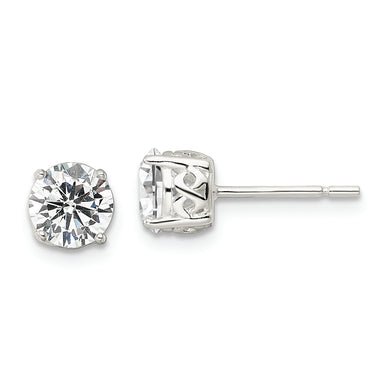 Sterling Silver RH Polished CZ Post Earrings