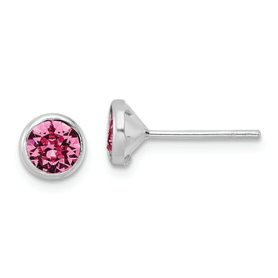 Sterling Silver RH-plated Post Pink Crystal Bezel Earrings