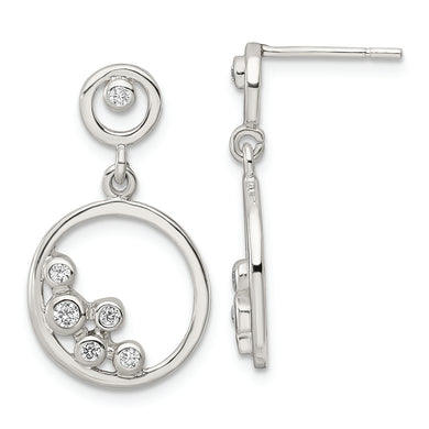 Sterling Silver Polished CZ Circle Dangle Post Earrings