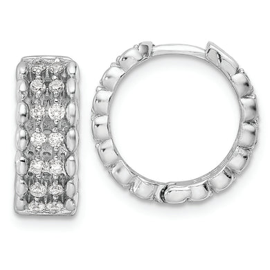 Sterling Silver Rhodium-plated Polished CZ Hinged Hoop Earrings