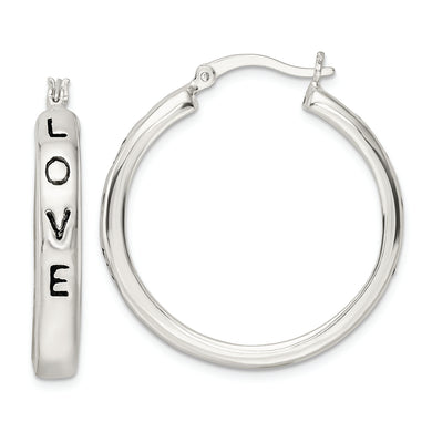 Sterling Silver Polished Black Enamel Love Circle Hoop Earrings