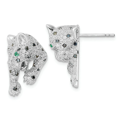 Sterling Silver Rhodium-plated Polished CZ Cheetah Post Earrings
