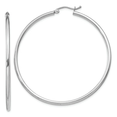 Sterling Silver Rhodium-plated 2mm Round Hoop Earrings