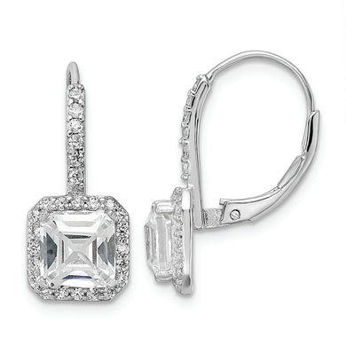 Sterling Silver Cheryl M Rhodium-plated CZ Leverback Earrings