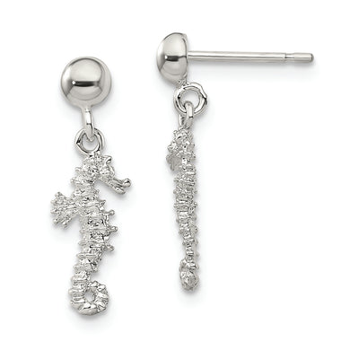 Sterling Silver Polished 3D Mini Seahorse Dangle Post Earrings