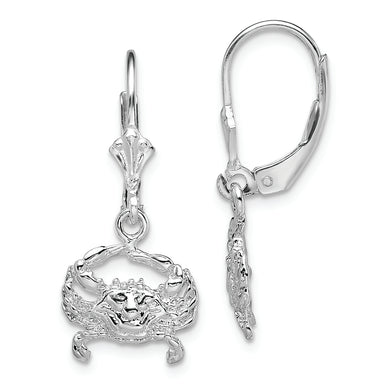 Sterling Silver Polished Blue Crab Leverback Earrings