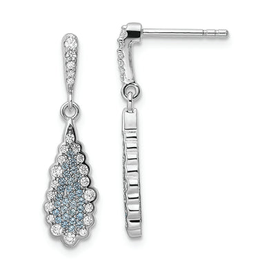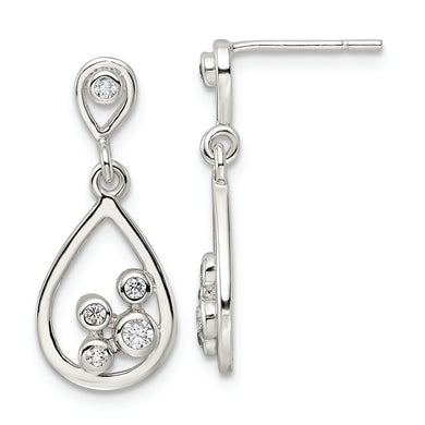 Sterling Silver Polished CZ Teardrop Dangle Post Earrings